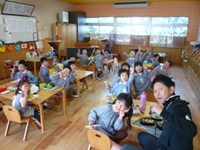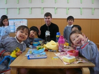 ↓今日はうさぎ組にニック先生。ニック先生は色んなクラスを回ってお弁当を食べます☆
