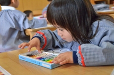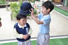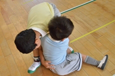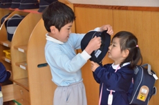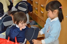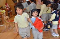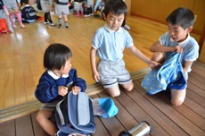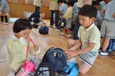 幼稚園の先輩・年長が、持ち帰りの準備を教えてくれました。