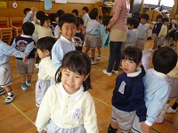 年長も年中も年少の友達を迎えて、お兄さん・お姉さんになりきって色んなお世話をしてくれています。その優しい心を感じることができて嬉しいです。