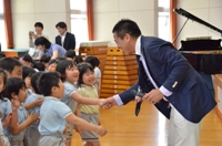 雨が降り、じめじめとした日が続きますね。しかし!今日はこの湿気をカラッとした空気に変えてくれるくらいの素敵な出会いがありました。その方はというと…園長先生のブログでも紹介されていた、てっぺんの大嶋社長です。なんと、朝のキッズタイムを見て頂きました。くすっ子も教師もいつもより熱が入っていました(笑)そんな子ども達の姿を見て、大嶋社長自ら子ども達に楽しいじゃんけんや挨拶をしてくださいました。