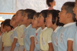皆で歌を歌ったり『くすっ子』を唱和したり、