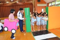 さて、今日は交通安全教室がありました。(やっと本題です…)警察署の方に来て頂いて交通ルールの話を聞きました。