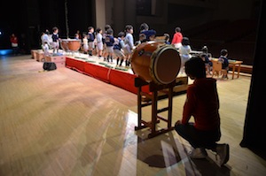 ↑ ステージ奥の和太鼓にご注目