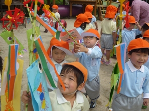 吹き流しと風車がついた自分だけのこいのぼりに、子ども達は大はしゃぎ!!