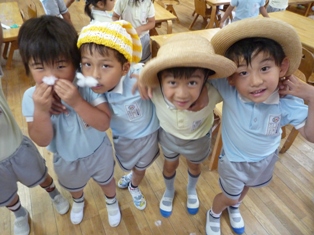 そら組では、部屋にある物を使って、役に変身するグッズを作りました。