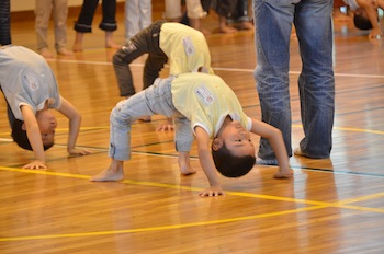 この数年の恒例イベント『三園合同レクリエーション』では体操対決!