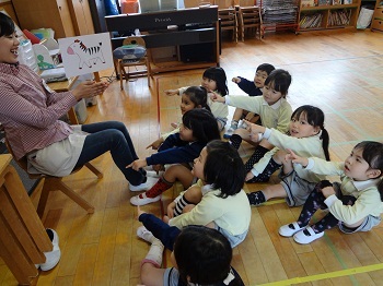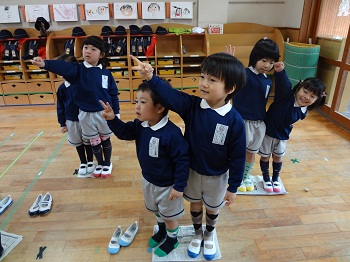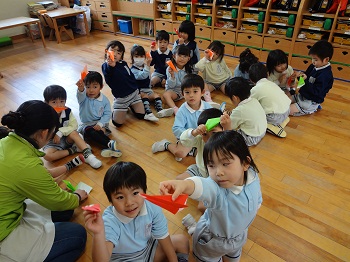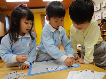 年長や年中の子が年少に優しく教えてあげる姿も見られますよ♪