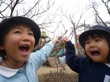 幼稚園でも春の訪れを感じさせるものを発見しましたよ♪