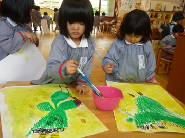 年少もダイナミックに絵を描いています♪