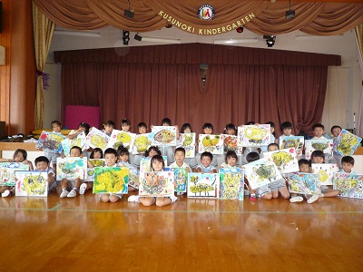 人気の絵画教室。どの子どもものびのびと絵を描いていました。