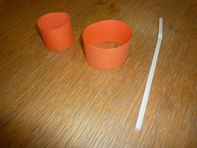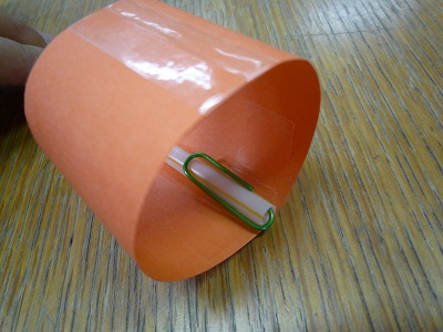 1.画用紙を細長くカットし、リング状にしてセロファンテープでとめます。