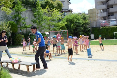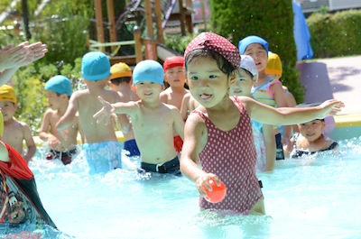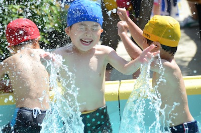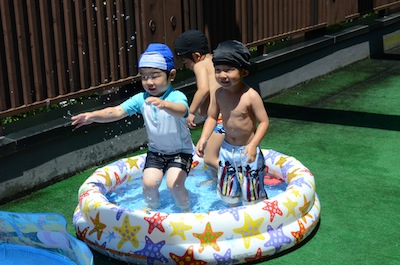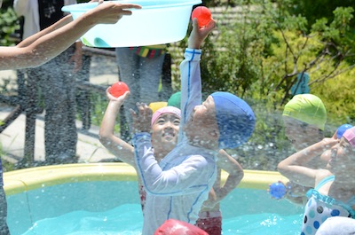 友達や先生と水遊びできるのが