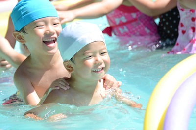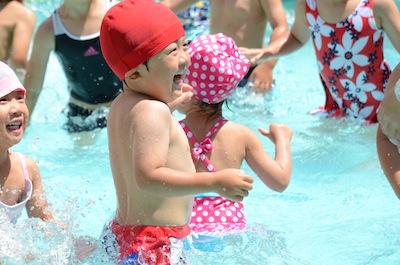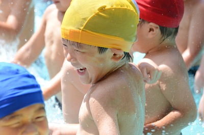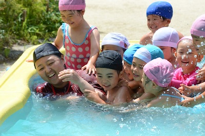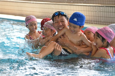 黒い水泳帽で沈んでいるのが園長先生です(笑)