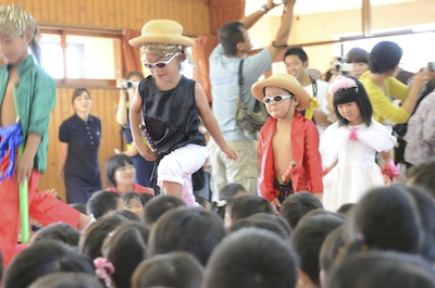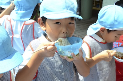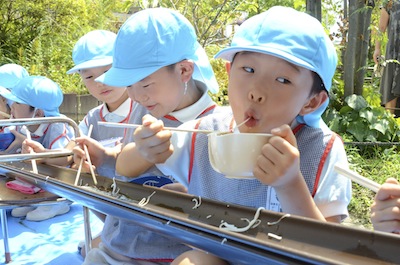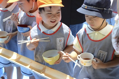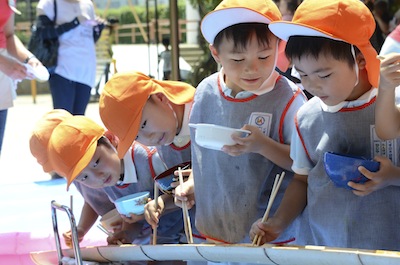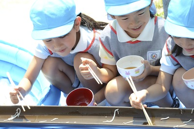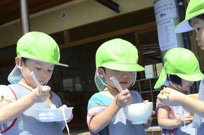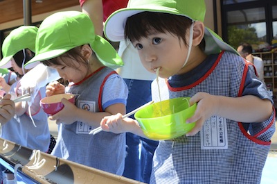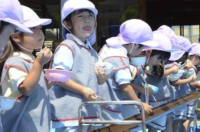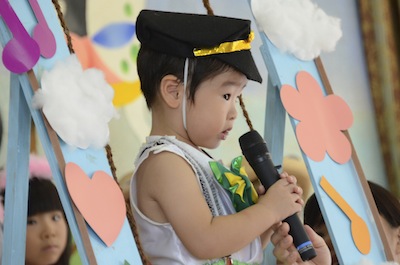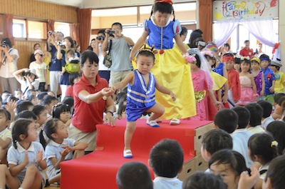 嬉しそうな巨人帽の年長さん&かわいいつぼみ組さん