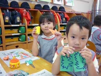 とんぼやいもむしなど、秋らしい飾りが出来上がりました♪