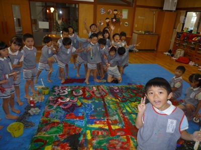 また、年長の段ボールの絵はクラスの壁面に飾ります!