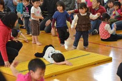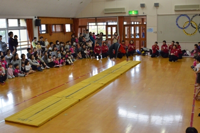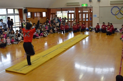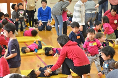 マット運動の後には手遊びをして