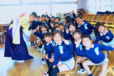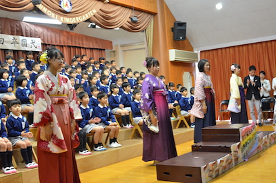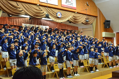 「お天気が良いのは、幼稚園の日頃の行いが良いけんでしょう」