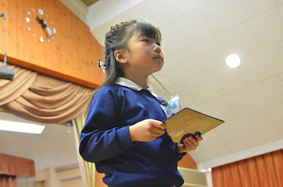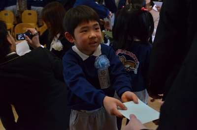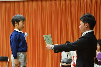園長先生から卒園証書を頂いて、大きな声で「ありがとうございます!」