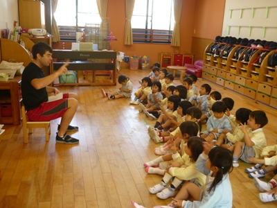 さすが年長!しっかり園長先生の目を見て話を聞いています。