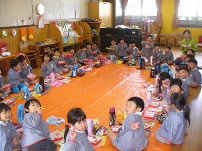 今日は歌を歌いながら、楽しく給食を食べました♪