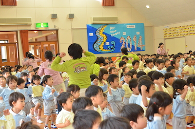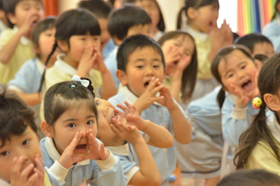 「おーーーーい!」と大きな声で叫ぶ子ども達