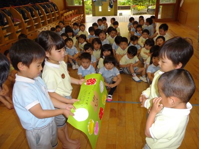 実際に年長や年中が来ると、「わぁ~!」と喜ぶ年少。