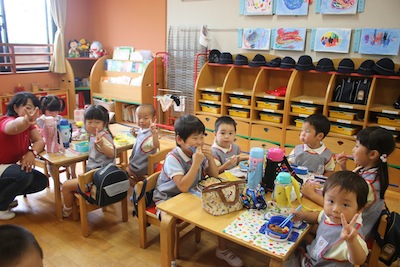 年長、年中、年少みんなで食べる楽しいひと時…♡