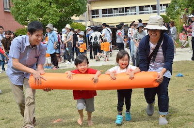 毎年恒例、綱引きの後ろは