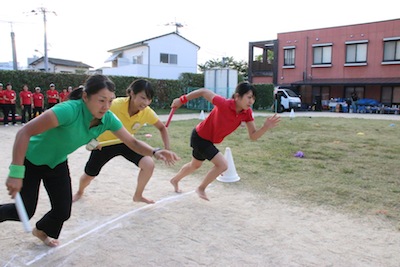 友達で協力して大バトンリレーをしますよ。