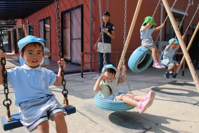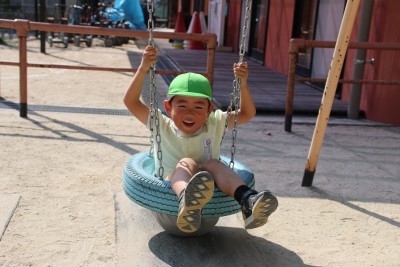 いつもと違うブランコに乗ってゴキゲンで~す♪