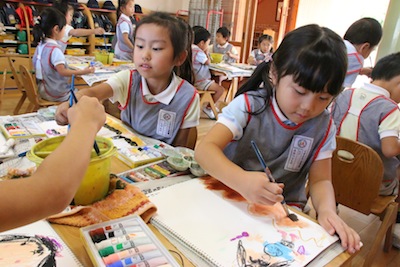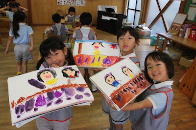 絵を描きながら芋掘り遠足の思い出に浸っていて