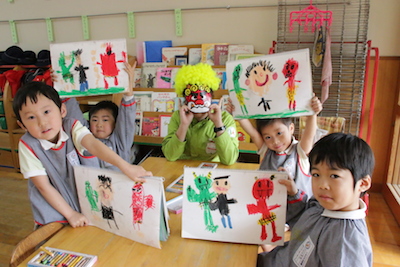 楽しそうな豆まきの絵ですね~