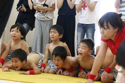 初めはレスリング大会のDVDを見て自分達がこれからすることを知るところから始まりました。