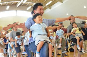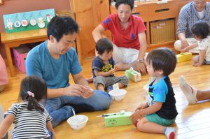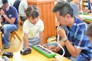 お父さん達が小さな小さな鍵盤ハーモニカを♡