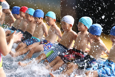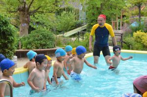 年少は幼稚園で初めてのプール!