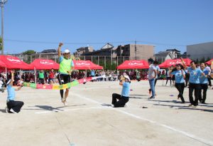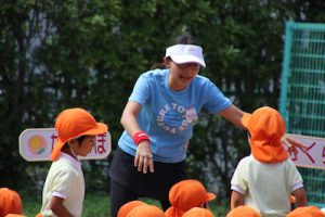 かけっこで走り終えた子ども達に