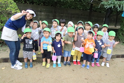 二歳児はスポーツランドでどんぐり拾いをしました。