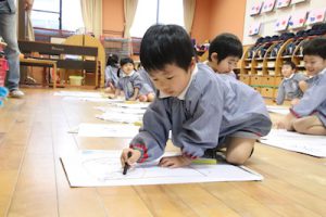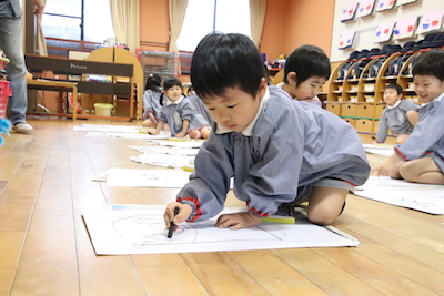 大きな画用紙に頑張って描く姿・・・可愛い♡