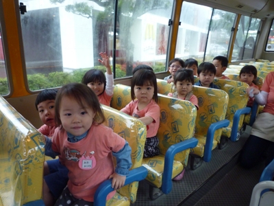 バスに乗れる!とわれさきに乗り込んだ友達も