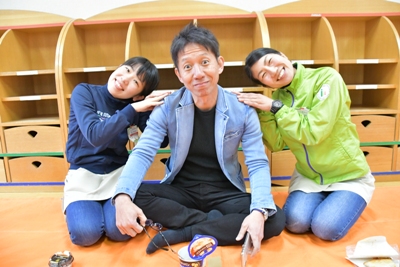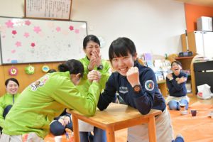 野田先生がフレッシュな田中先生に腕相撲の勝負を挑み