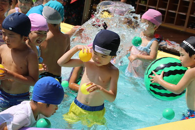 水遊び最初の頃よりも少しずつ水に慣れてきましたよ。
