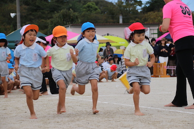 かけっこのトップバッターは年中組!