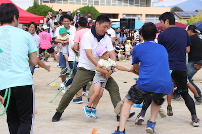年長親子競技は騎馬戦!