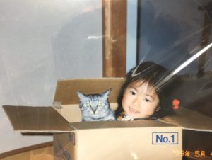 猫が大好きで当時飼っていた猫と仲良しでした。(一緒に段ボールに入るほど…(笑))