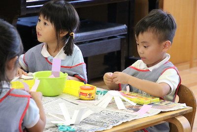 折り紙で貼り絵をしたり、