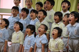 「明日キンダーホールより広いところ行くっちゃろ!?」と