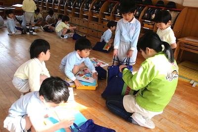 さて、今日は年少、年中がお道具箱を持ち帰っています!!