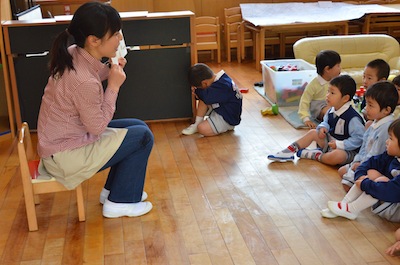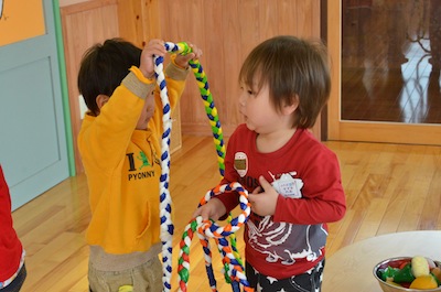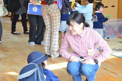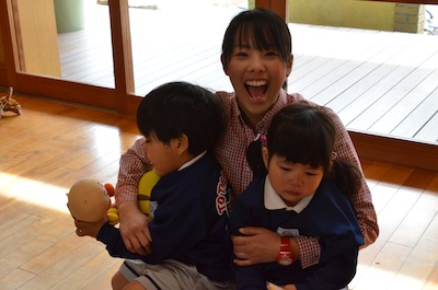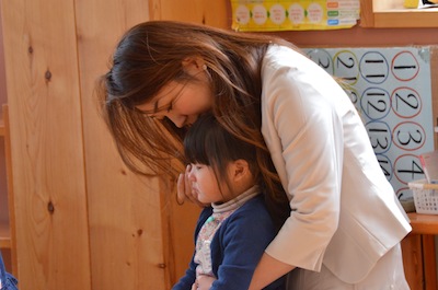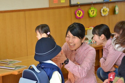 保育室に着くと、担任の先生がとびきりの笑顔でお出迎えです!