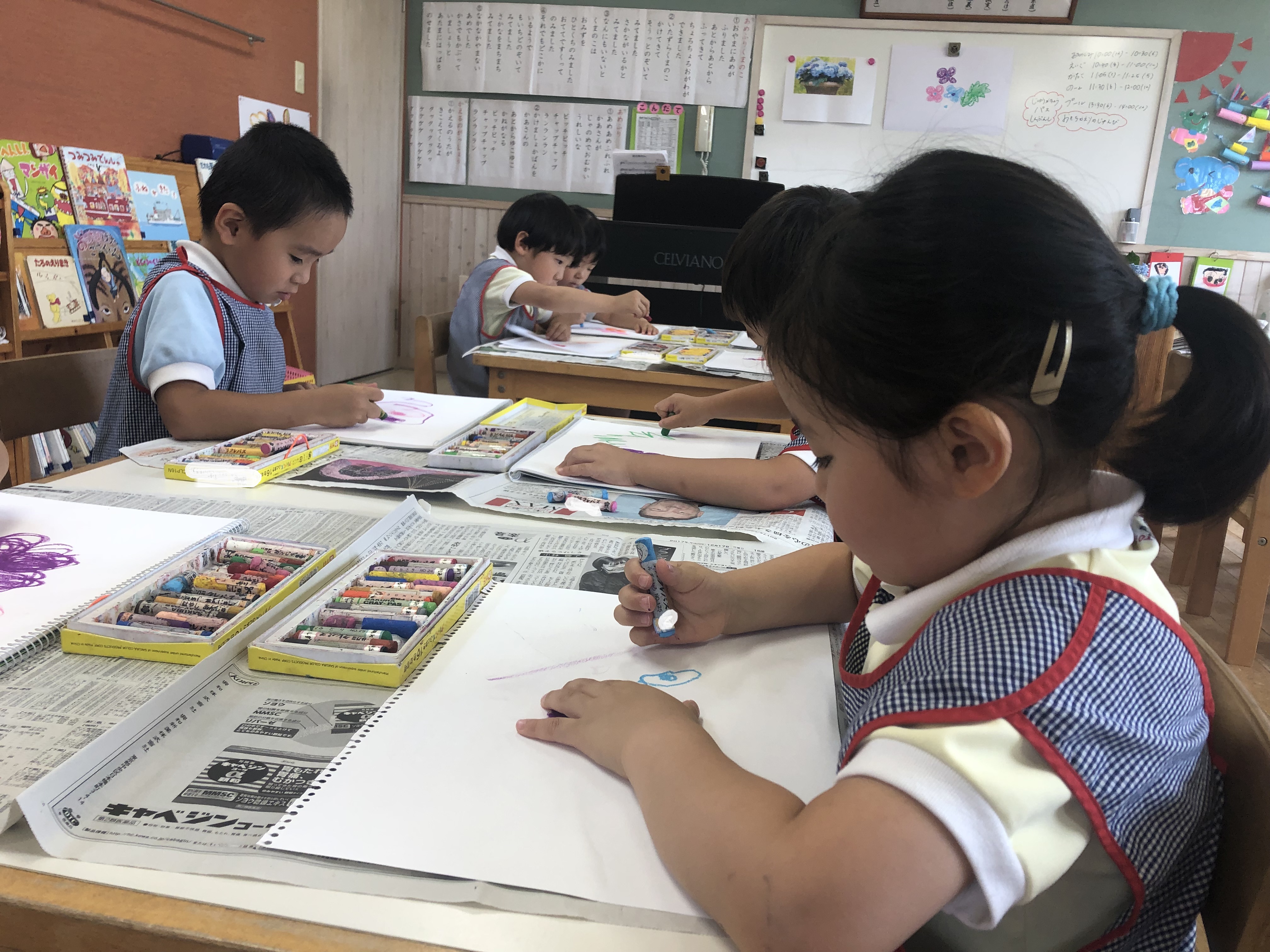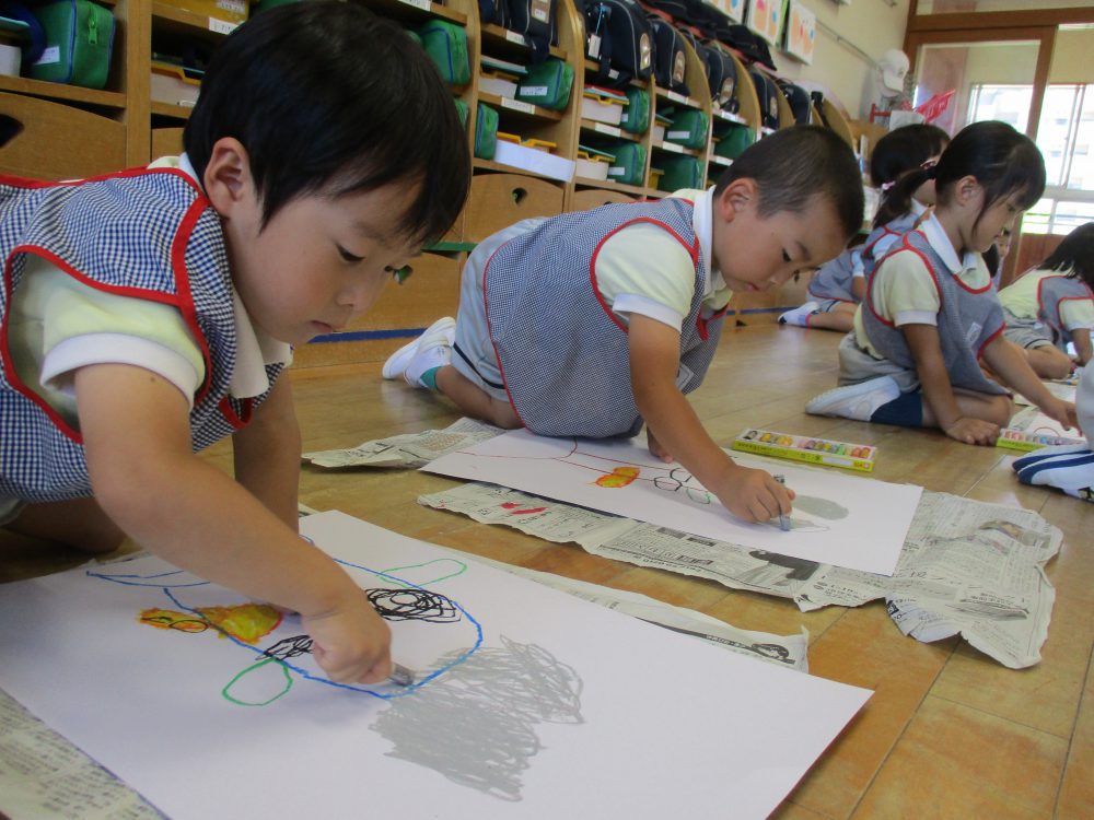 クラスごとに色々なものを描いていますよ!